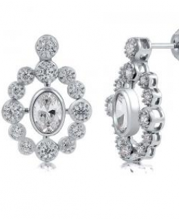 Beautiful oval shaped stud earrings set in sterling silver, stamped with a quality mark "925". Plated with rhodium to reduce tarnish. Earrings measure 0.7 inch L X 0.5 inch W. Dazzled with cubic zirconia CZ stones, 1.68 carat in total weight. Posts with butterfly backs for pierced ears.